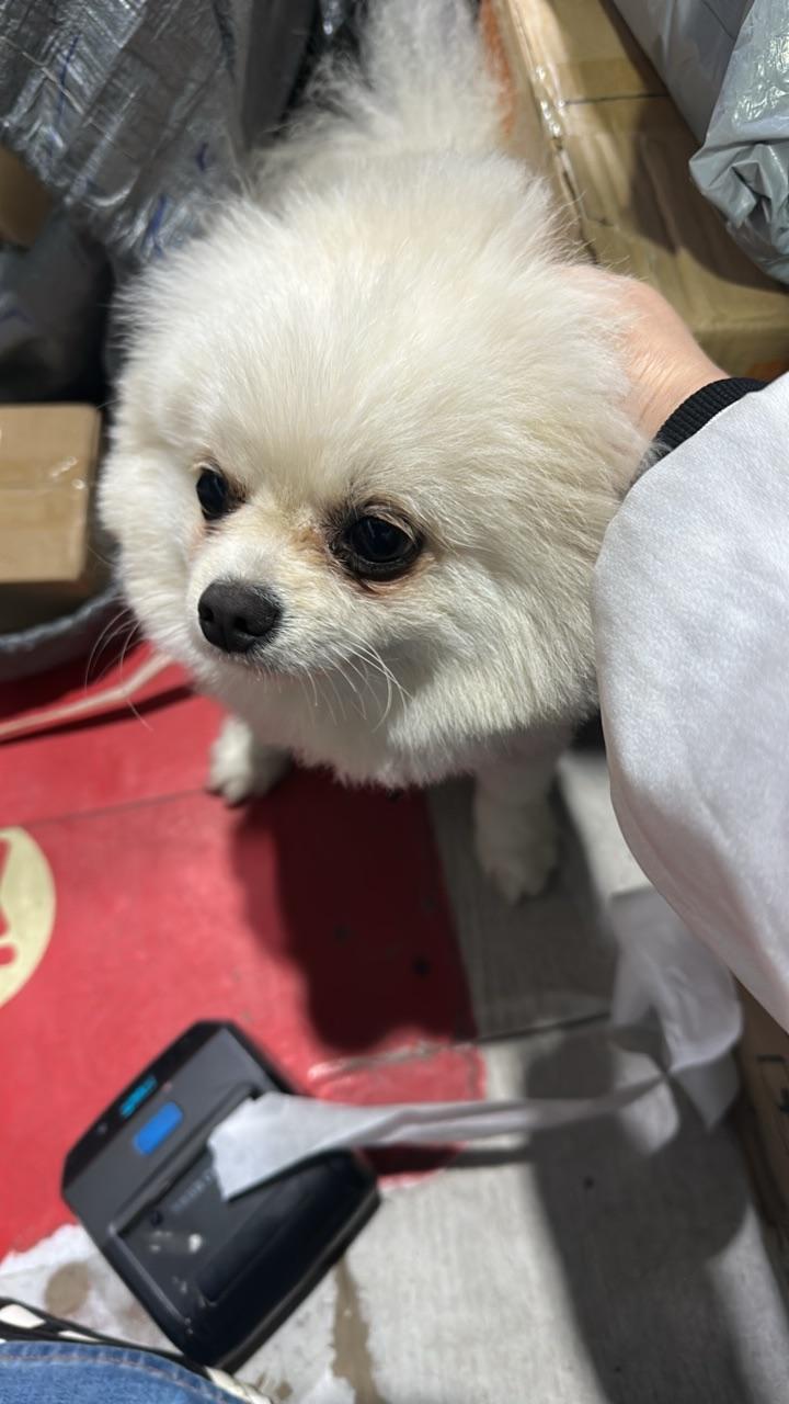 捡到一条白色博美狗 眼泪痕比较重,领取地址世纪名都内街乐源超市☎️18936778057