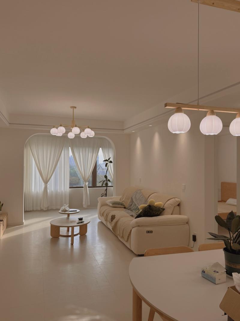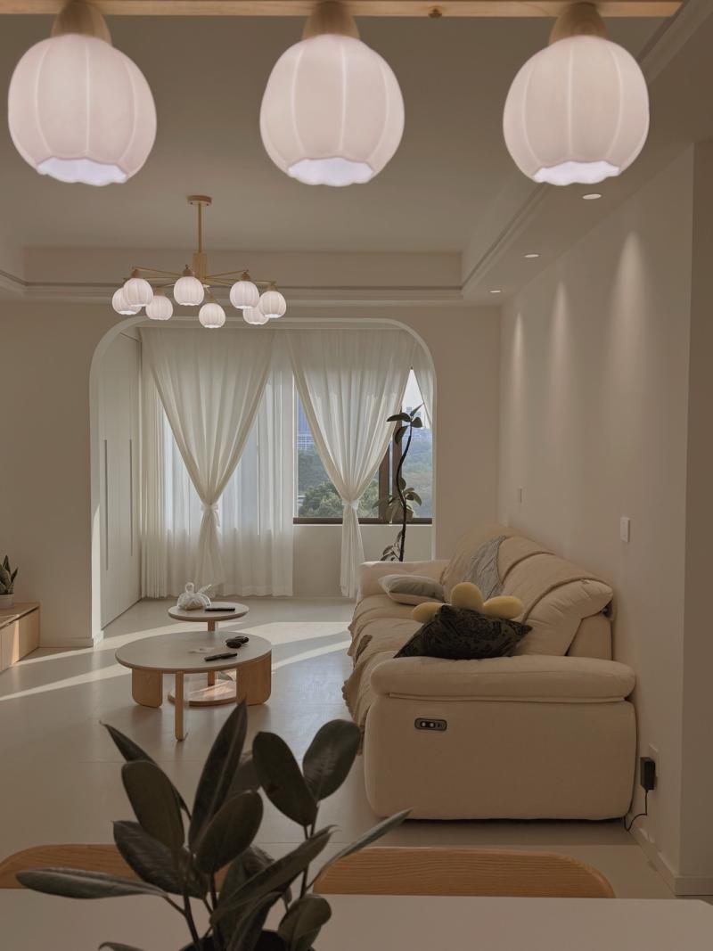 金陵府 奶油风灯具窗帘安装实拍