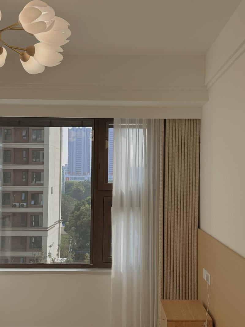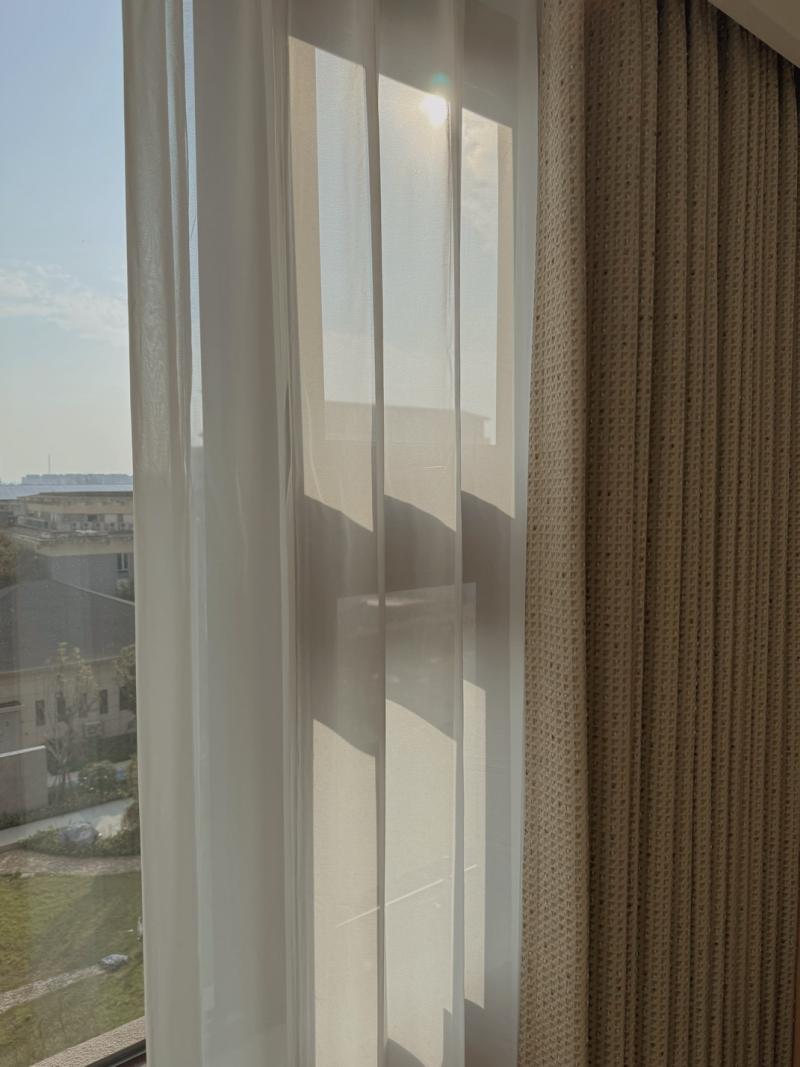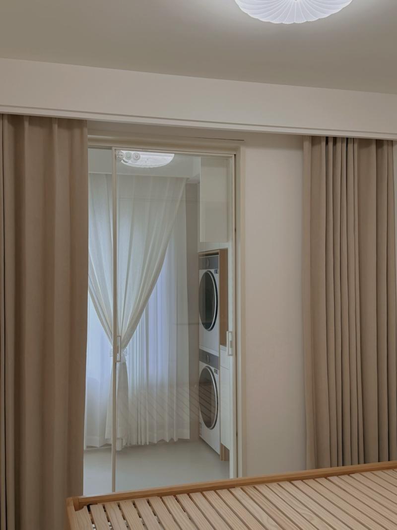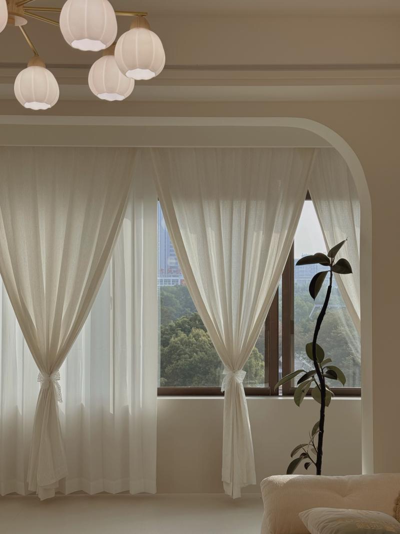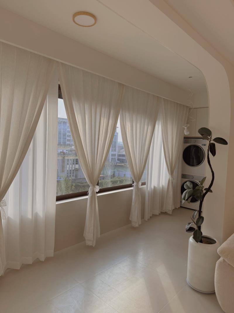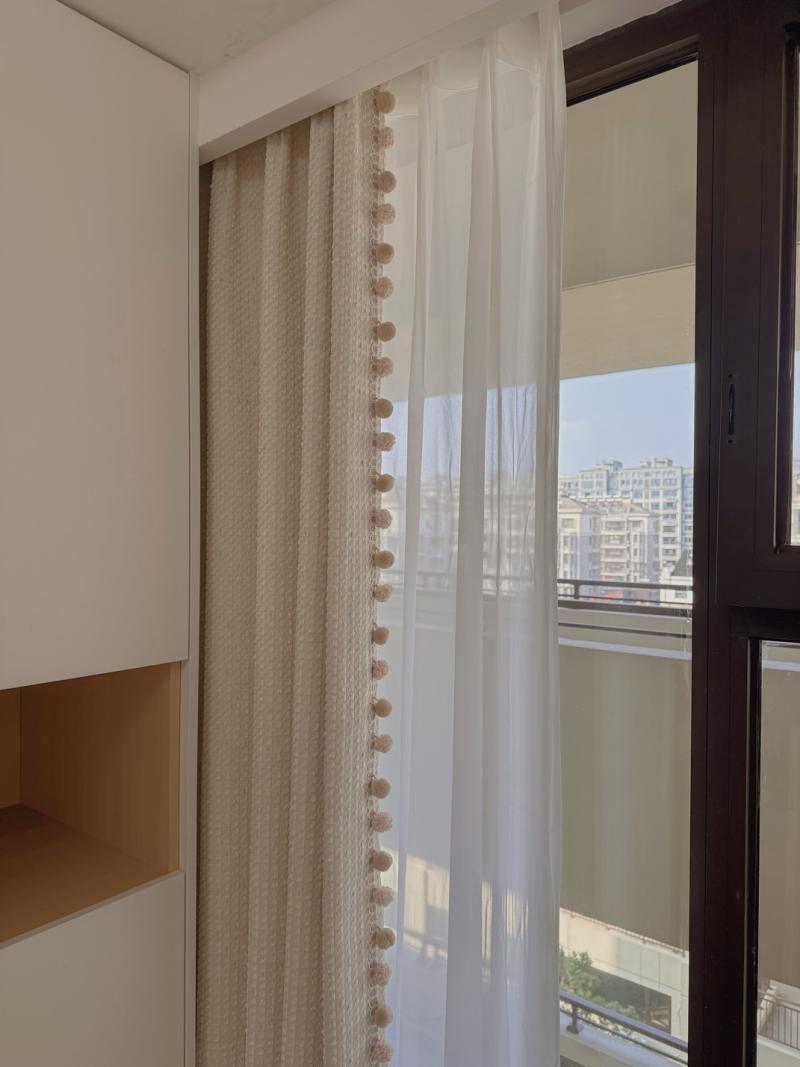 ✅ 窗帘:米白/奶咖棉麻+幻影纱,遮光好、垂感足,韩式褶皱高温定型,好打理不藏灰