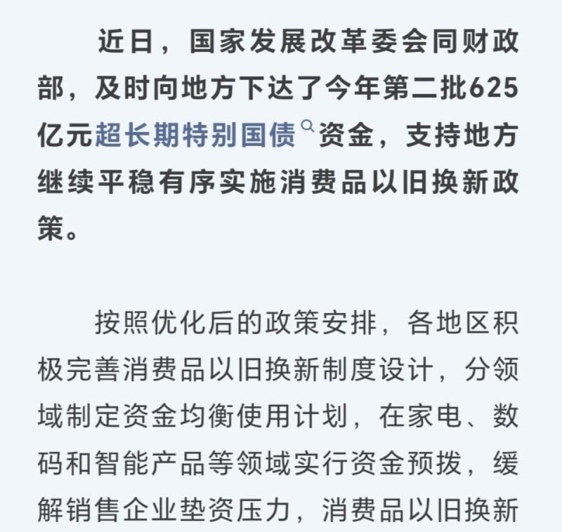 “国补”继续!第二批625亿元资金下达