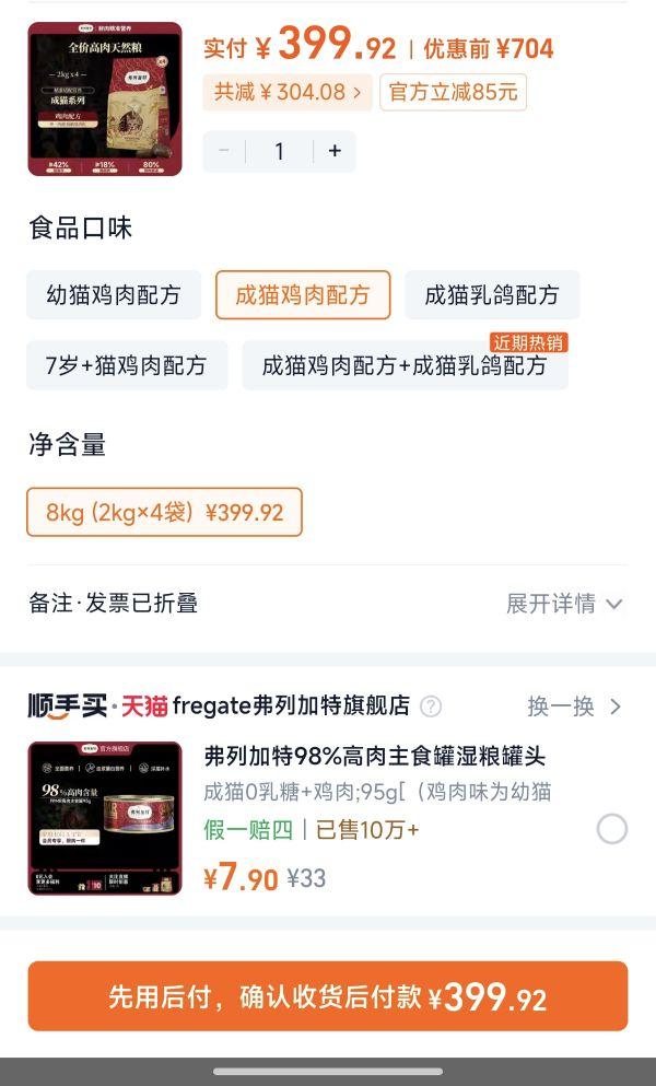 价格:160元 [弗列加特全价高肉天然猫粮2kg/袋]