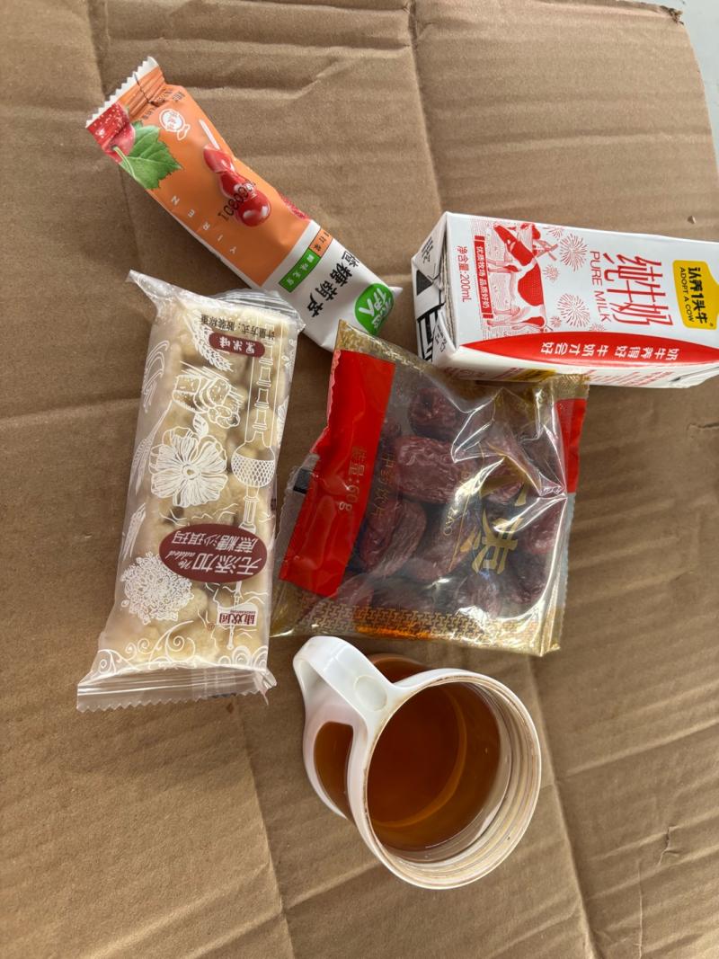 每天四点多起床,随便吃点,就来摆摊,这个点必须补充点能量,不然会身体发软,腿发抖,可能有低血糖吧所以包里都备着零食糖果!