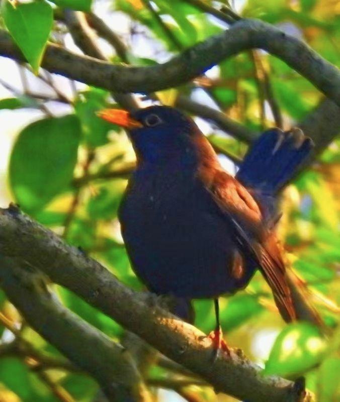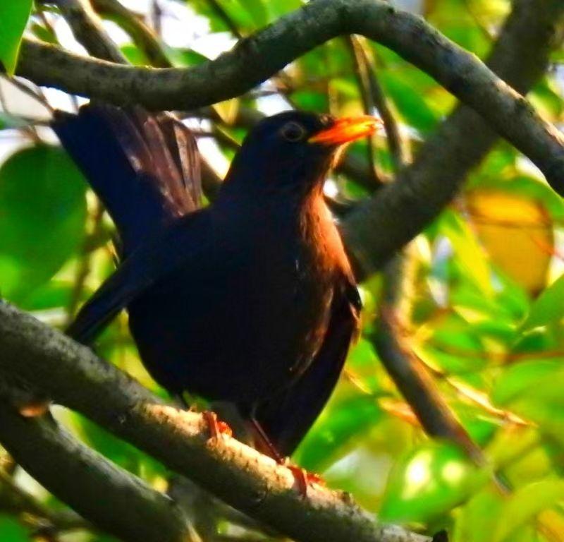 乌鸫是著名的鸣禽   乌鸫以婉转多变的鸣唱著称  雄鸟能模仿20种以上的鸟鸣  甚至机械声   清晨与黄昏的"音乐会"使其赢得"百舌鸟"美誉